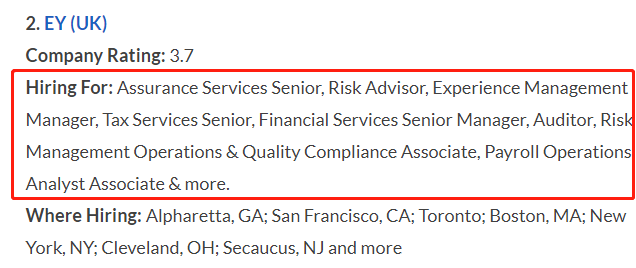 细看这8个职位,EY可是将税务、审计,甚至薪资最高的咨询部门都放出来了!