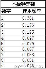 本福特定律因20世纪早期英国物理学家本福特而得名,其内容是:自然数据源(信用卡账单、采购记录、现金收据)生成的数字中,约有30%的数字的首位数是1,如1、1314;首位数为2的数字约有18%;顺序递减,首位数为9的数字少于5%