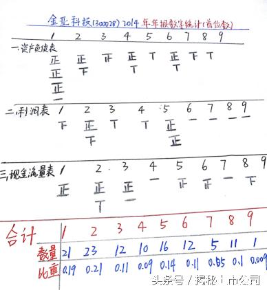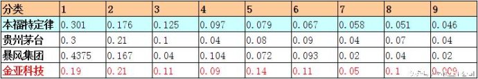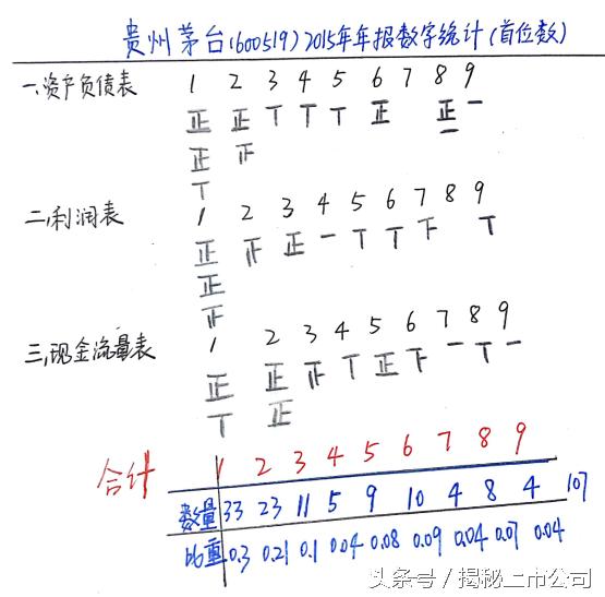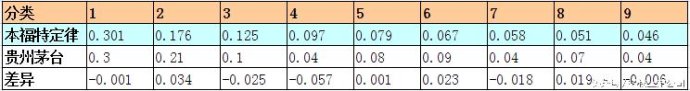 可做折线图比较分析。公司表现越好,偏离本福特定律的程度越小,茅台最接近本福特定律;反之,公司表现不好财务造假,就会与本福特定律有明显偏离,金亚科技就是一个例子。最后附我分析这几家公司时的草稿,更多的信息在草稿里面。局限是数据不够大,选择的公司不够多。