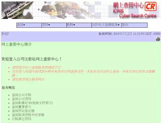 公司注册处综合信息系统(ICRIS)的网上查册中心可以英文或中文进行联线查册,客户可查阅由公司注册处处长登记和备存的公司现况数据,以及文件的影像纪录。