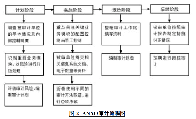 1. 审计流程。ANAO的SAP系统审流程分为审计计划阶段、审计实施阶段、审计报告阶段和审计后续阶段。审计计划阶段初步了解被审计单位环境与内部控制制度,对关键模块的控制风险进行分级处理。审计实施阶段通过熟悉业务流程与系统文档,结合配置手段对系统数据执行各项实质性测试。在出具最终审计报告之后,定期进行跟踪审计保证对审计对象的适时评价、持续监督和及时反馈。
