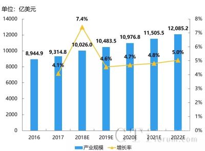 其中,美国、加拿大为主的北美地区2018年产业规模达到4463亿美元,较2017年增长5.4%,市场规模全球占比44.5%,牢牢占据全球最大份额