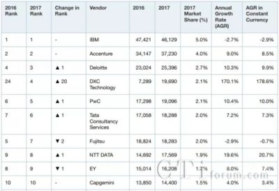 5、2017年全球市场份额排名前10的IT服务提供商