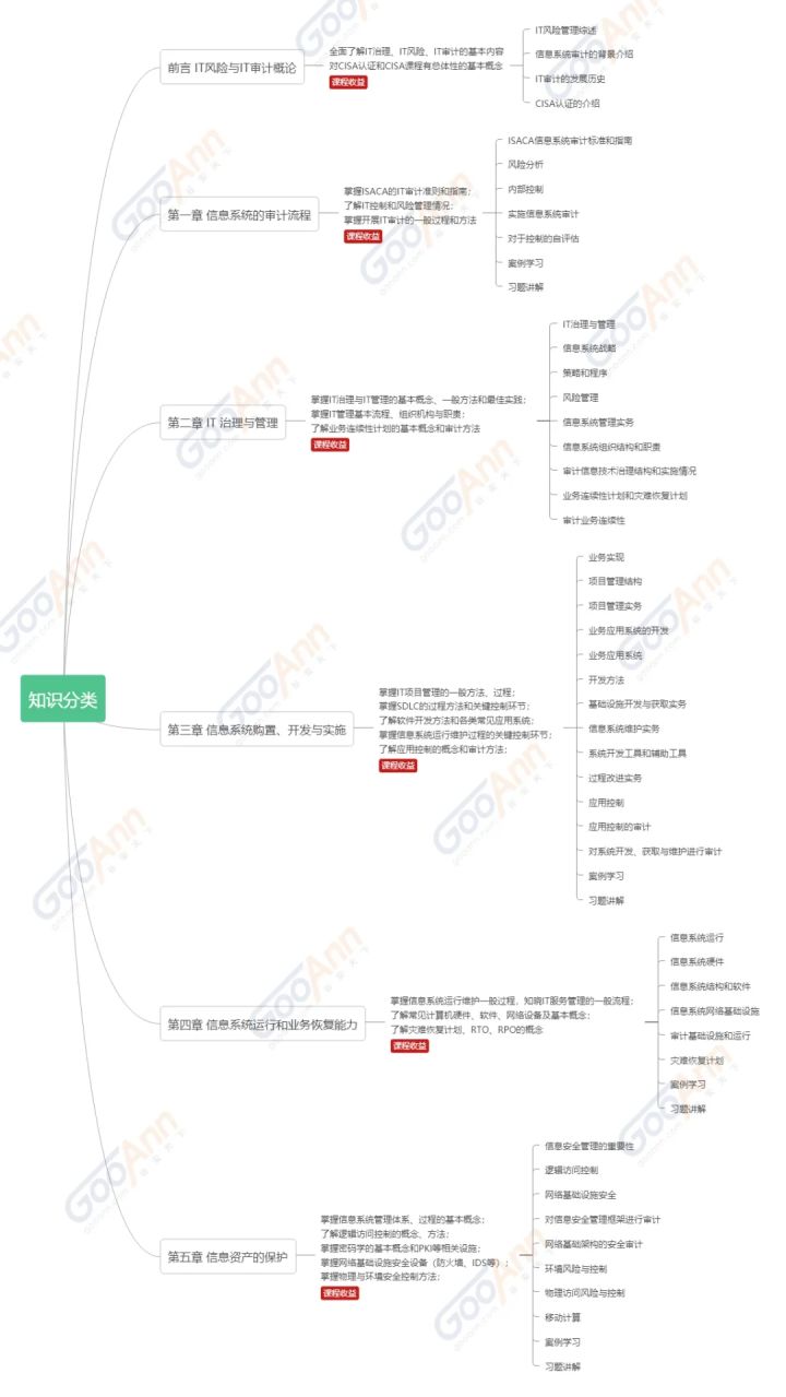 实战派专家授课,现实案例与CISA知识框架结合,学员学以致用。知识点精讲,重点知识点强化,考前冲刺。独创“树状复习大纲”梳理及重点辅导,专业有保障。