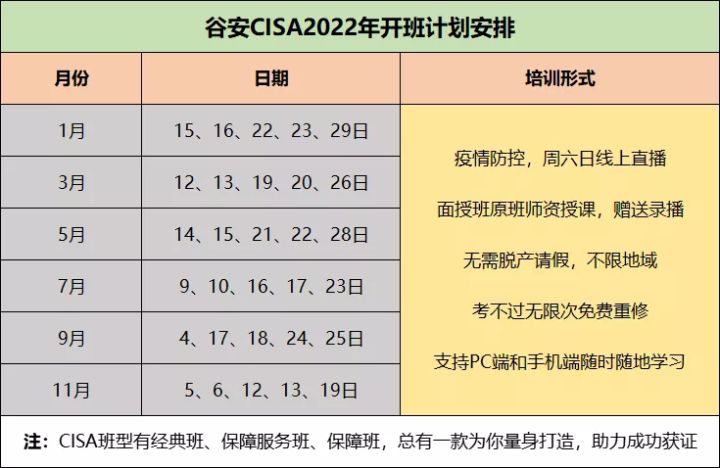 谷安CISA认证培训开设14年,是国内首批ISACA官方授权培训机构,几百期CISA公开课培训及诸多企业内训案例。