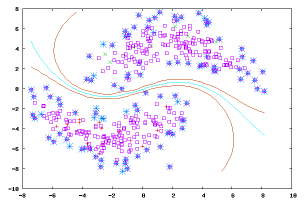 基于核的算法中最著名的莫过于支持向量机(SVM)了。 基于核的算法把输入数据映射到一个高阶的向量空间, 在这些高阶向量空间里, 有些分类或者回归问题能够更容易的解决。 常见的基于核的算法包括:支持向量机(Support Vector Machine, SVM), 径向基函数(Radial Basis Function ,RBF), 以及线性判别分析(Linear Discriminate Analysis ,LDA)等