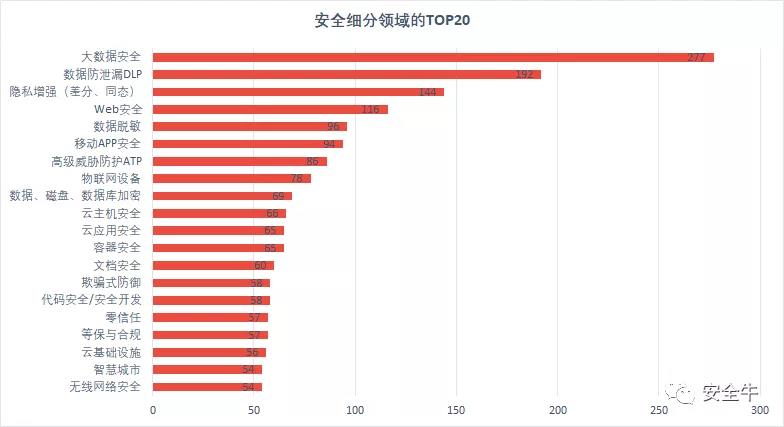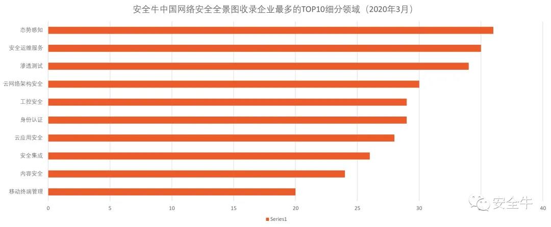 可以看出,2020年,“快速显影”的甲方需求正在刺破网络安全行业长期以来的“错觉”和“幻觉”。与2020年一季度安全牛网络安全全景图报告中的厂商统计结果(上图)相比,我们可以看到,甲方用户对网络安全热度和优先级的判断有着显著不同,数据安全、隐私增强、应用安全、高级威胁防护和物联网设备是甲方用户最关心的TOP5安全细分领域。