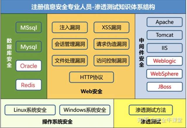 图中红色字体为仅在CISP-PTS注册培训及考试中要求掌握的知识内容
