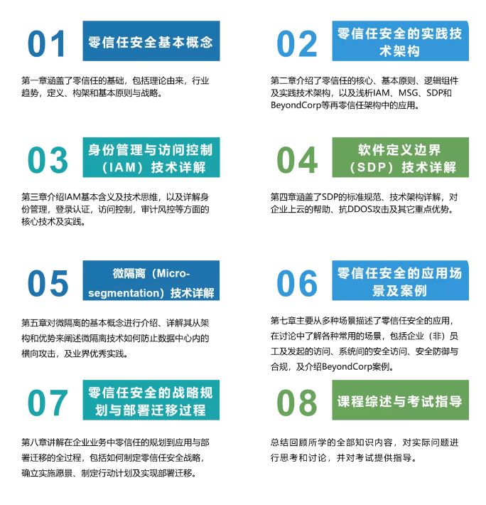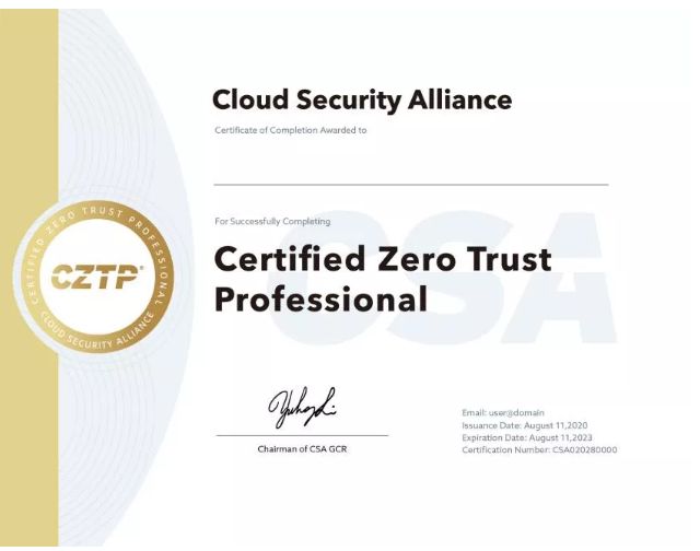 CZTP(Certified Zero Trust Professional)零信任专家认证,是首个面向个人的零信任领域的安全认证,目的是通过对零信任架构、身份管理与访问控制、软件定义边界、微隔离等方面多维度进行系统性学习,结合场景、案例、规划与部署等角度,对零信任应用于实践等方面的学习,帮助网络信息安全从业人员掌握零信任知识,培养零信任安全思维,传播与践行零信任理念,助力新型网络安全人才培养。