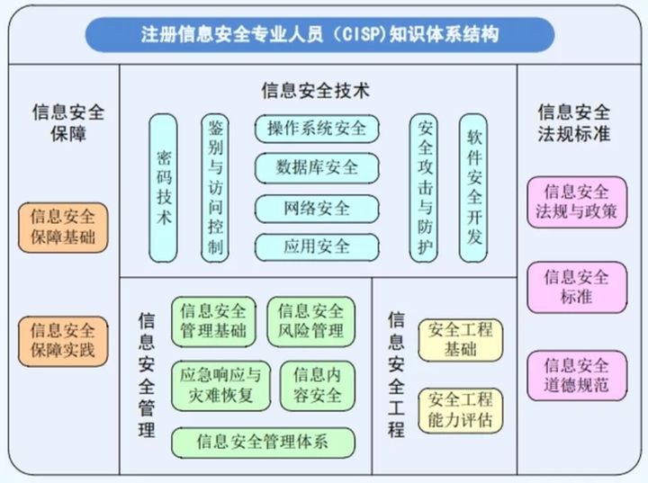 CISP证书在内容和教材的编写上,结合了我国关键信息基础设施安全保障需求,以信息安全保障为核心,按照信息系统生命周期各阶段的工作,划分并构建了信息安全保障、网络安全监管、信息安全管理等十大知识域,内容涵盖信息安全工作各个环节。